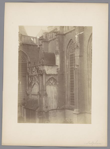 This old photograph shows the Toren van de Geerteskerk te Kloetinge, and even though we don't know who made it, there’s a real beauty to the soft tonal gradations and the way it captures the light. The image feels almost like a drawing, a study in muted browns and greys. I’m struck by the surface texture, smooth and matte, like a well-worn piece of paper. Look closely, and you can see how the light catches the edges of the buildings, giving them a subtle glow. I love the way the tower rises up, almost dreamlike, framed by the buildings on either side. It's a reminder that artmaking is a process of discovery, of finding beauty in the unexpected. This photo reminds me a little of the early work of Bernd and Hilla Becher, in the way it seeks to document architectural forms. I think art is an ongoing conversation, where artists build upon the ideas of those who came before them.