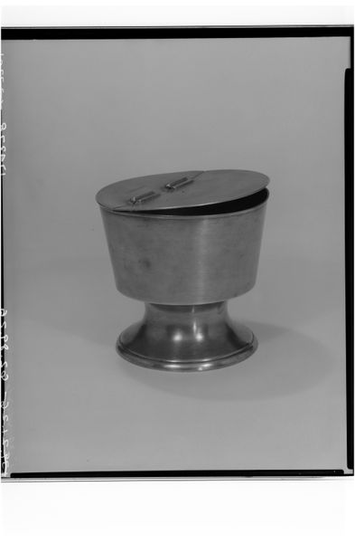 This is a silver beaker, likely crafted by Samuel Ely Hamlin in America. Its simple form immediately strikes us: a slightly tapered cylinder with a subtle, rounded base. The material's cool, reflective surface catches the light, hinting at its preciousness. But beyond its functional design, this beaker embodies a dialogue between form and utility. The smooth, unadorned surface directs our attention to the purity of its shape. The subtle scratches and marks accumulated over time become a record of its use. The beaker operates as a signifier, reflecting broader cultural values related to craftsmanship. The elegance in its simplicity invites us to consider how everyday objects can transcend their practical purpose, and also how they evolve over time.