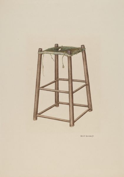 Editor: Here we have "Child's Armchair," a watercolor drawing by Dorothy Johnson from around 1939. The muted tones and focus on a simple object give it a sort of melancholic, intimate feel, almost like a portrait of absence. What do you see in this piece? Curator: It’s funny you mention absence; that's exactly where my mind wanders too. This isn't just an armchair, it's a captured moment—a quiet scene echoing untold stories. I get a sense of someone having actually *sat* in the chair, or *belonging* to the chair, perhaps a child whose presence now exists only in memory. It's like finding a half-finished game or a worn teddy bear; ordinary objects holding extraordinary weight. The medium contributes to the mood, too; watercolor always feels delicate, almost fragile, doesn't it? What is your interpretation of this quiet illustration? Editor: It absolutely does! I wonder, though, if its 'ordinariness' adds to the impact, highlighting how the simplest things become vessels for powerful emotions and memories? And now that I'm thinking about it - in our everyday lives we *belong* to some of our furniture, for example your bed or sofa... maybe that's what made me associate melancholy with the artwork, and why the 'absence' resonated so vividly for me. Curator: Exactly! The real skill of the artist here isn’t in technical prowess alone but, more impressively, Dorothy allows us to imagine our *own* experiences in relation to the empty chair. It is a powerful reflection of how everyday life merges and entwines with memory and feelings. It almost makes me feel nostalgic... Editor: This has completely changed how I see still life paintings! They’re not just pretty arrangements; they’re conversations waiting to happen. Curator: I couldn't agree more, that makes my heart sing, too! It's been an absolute pleasure delving into Dorothy Johnson's work with you. I'll be looking at everyday things in a totally new light from now on, which is *always* the magic of art, isn't it?
