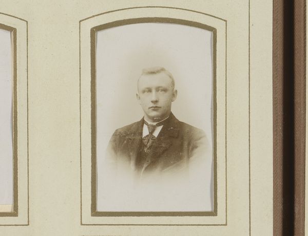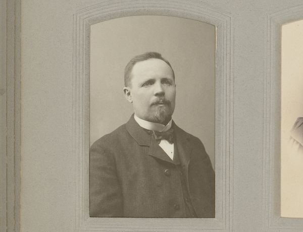 This portrait of Mr. Nobert Petrus van den Berg was captured by Hendrik Herman van den Berg using a photographic process. Immediately, the sepia tones evoke a sense of nostalgia, a reaching back into the past. The composition is straightforward. The sitter, centrally placed, is presented in a formal pose. The lines of his suit—the lapels, the bow tie—are crisp, indicative of the sitter's attention to detail. Light plays across his face, subtly accentuating the contours and textures, but also softening the overall effect. This photograph operates within a system of signs. Clothing, posture, even the subtle gradations of light and shadow communicate cultural codes, and the values of that time. The photograph's surface, smooth yet aged, acts as a material witness to the passage of time. Note the photograph's structure. It encourages us to consider how representation mediates our understanding of history and identity.