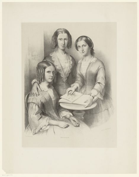 Jean-Auguste-Dominique Ingres rendered this drawing of The Kaunitz Sisters, using graphite to produce a composition with muted tones and delicate lines. The arrangement of the three figures creates a series of visual planes, each defined by subtle shifts in value. The youngest sister sits at the piano in the foreground, with the two older sisters standing behind. Ingres employs a structural clarity that echoes the neoclassical aesthetics of his time. The lines are precise, delineating the contours of the women's faces and dresses. The use of chiaroscuro is minimal, yet effective in creating a sense of depth and volume. This approach to form underscores a semiotic system that values order, reason, and idealized beauty. The composition destabilizes conventional portraiture through its understated elegance, shifting away from bombastic displays of wealth and status. Ultimately, the drawing's power lies in its formal restraint. Ingres’ controlled application of graphite enhances the image's impact, inviting us to reconsider the codes of representation.