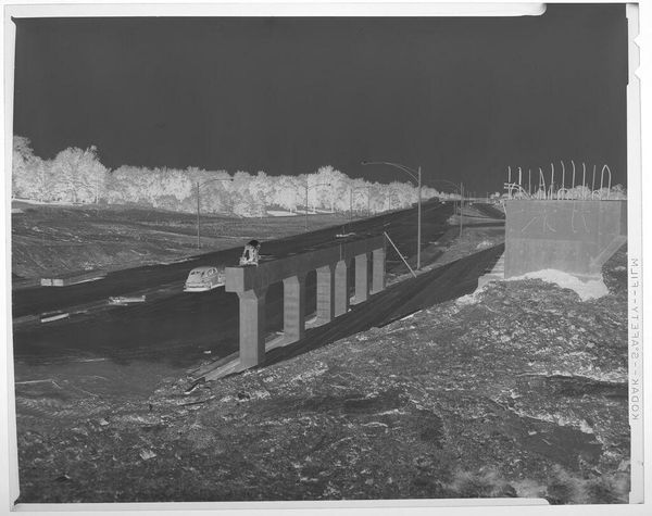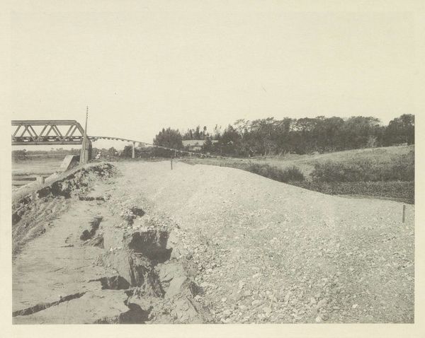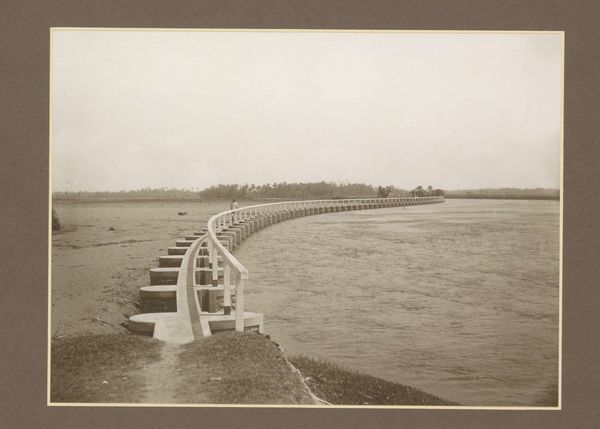 Editor: Paul Strand's "Camargue, France" from 1951, a gelatin-silver print, really strikes me. It’s a study in contrasts, the sharp, modern lines of the bridge against the soft, almost hazy, marshland. The monochromatic palette adds to the serene yet stark feeling. What elements jump out to you, and how do you read them? Curator: It's astute to focus on the dialectic Strand constructs through form. Observe how the strong diagonal of the bridge disrupts the horizontal planes of the landscape. The textures also merit consideration. Notice how Strand exploits the tonal range of the gelatin-silver process. The smooth, reflective water opposes the grainy, almost tactile, vegetation. Do you perceive a visual rhythm emerging from these juxtapositions? Editor: Absolutely, I see that rhythm now, especially the way the linear bridge contrasts with the organic curves of the land. It’s almost a dialogue between the man-made and the natural. But does this tension suggest a deeper commentary? Curator: Commentary, perhaps, but approached through formal relationships. Consider the picture plane as a structured field. The placement of the bridge is not arbitrary; it creates a dynamic tension with the receding space. Further, think of photography's inherent indexicality. While capturing reality, it abstracts through framing and light. In Strand's hands, does realism transcend mere representation to become an arrangement of shape and tone? Editor: That makes so much sense. So, while the photograph captures a specific place, its power lies in how those shapes and tones interact. I hadn’t considered how the act of framing changes the reading so fundamentally. Curator: Precisely. Strand isn't simply documenting; he is composing. By examining these elements closely, one appreciates the artistry of photographic structure. Editor: I'm walking away with a deeper appreciation for the formal elements and how they drive the photograph's meaning. Thanks for showing me new perspectives on this image. Curator: And you, in turn, sharpened my perspective by engaging with the inherent tensions Strand constructs.