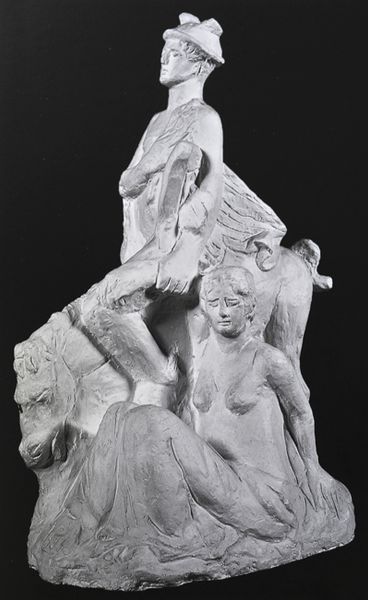 Gunnar Jensen created this relief sculpture, "Young man placing a jar on a woman's head," in 1897. It’s currently held at the SMK, the National Gallery of Denmark. At first glance, we observe a man placing a jar on a woman's head, but this simple gesture carries layers of meaning related to gender and labor. Jensen lived during a time of changing gender roles, and he navigated his artistic expression within a patriarchal society. Here we have two figures in neoclassical style. The labor seems to be all on the part of the man, while the woman looks on passively. The woman is partially draped in cloth, but both figures are mostly nude, drawing the viewer's attention to their physical forms and suggesting ideas about purity and innocence. Consider how the woman's pose and expression differ from the man's, and what this might say about societal expectations. How do the dynamics of power, gender, and representation play out? This artwork invites us to consider not only the classical narratives it references but also the societal norms and values of Jensen's time.