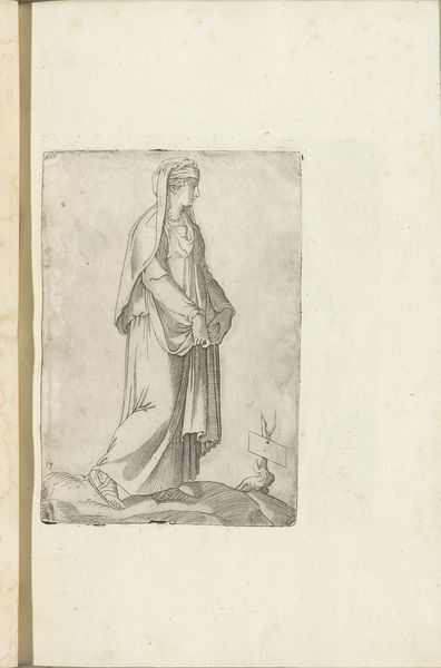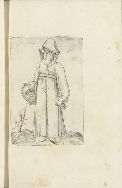 Editor: So, this is "Hongaarse vrouw," a pencil drawing from 1569 by Ferando Bertelli, housed at the Rijksmuseum. It’s interesting; it has this sketchbook quality, but the figure is presented so formally. What do you see in this portrait? Curator: I see a visual encoding of power and identity at a very specific historical juncture. This isn't just a portrait; it's a statement about belonging and perhaps even resistance. Note the almost anthropological quality in how the subject is represented; we might ask ourselves, what does it mean to present a "Hungarian woman" in 1569, and what kind of power dynamics were at play? Editor: Resistance? What makes you say that? Curator: Well, consider the context. The Habsburg Empire was expanding, and Hungary was a contested territory. Displaying and preserving these images serves as both historical documentation and as symbols of defiance of subjugation, reinforcing identity amidst political upheaval. This work serves as evidence that she holds a different social position from the ruling family; however, it also begs a question regarding who had the power to choose this "Hungarian woman," as a sign of national representation, thus reflecting back who created it as a work and how, where and why it has been archived until now. Editor: That's fascinating. So, you're saying this seemingly simple sketch is a complex negotiation of identity, power, and cultural representation. I would've never thought of it that way. Curator: Exactly! This is where art history and contemporary theory can meet: by looking at artworks like this, not just as aesthetic objects, but as loaded documents that tell us stories about gender, race, and politics. Now what’s interesting, going further with that thread, are there more sketches like this made by the same author? Editor: That's definitely given me a lot to consider. Thanks for sharing your perspective! I’ll look at art through a completely new lens. Curator: My pleasure, hopefully opening these conversations pushes the art to be a step closer to a visual statement of resistance!
