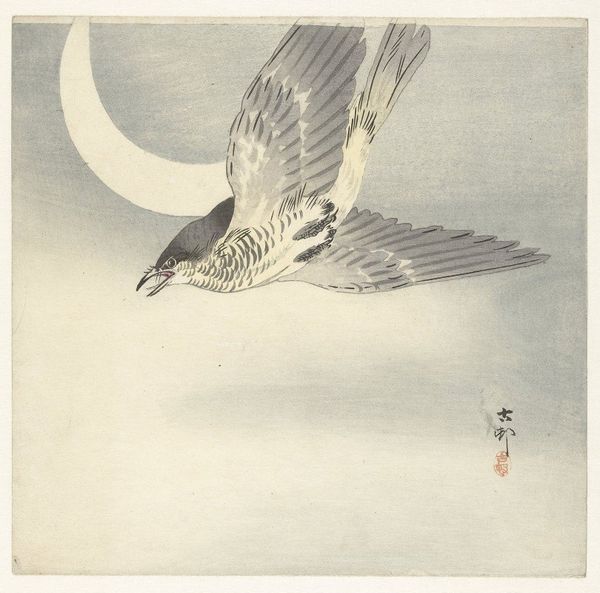 Ohara Koson made this woodblock print titled, "Geese in Full Moon" during a time when Japan was opening up to Western influences while also seeking to reaffirm its own cultural identity. Koson, trained in traditional Japanese painting, became a leading figure in the Shin-hanga movement, which revitalized traditional ukiyo-e woodblock printing. He focused on kacho-e, images of birds and flowers. These subjects were not merely decorative; they were deeply intertwined with Japanese culture and spirituality, embodying harmony, balance, and a reverence for the natural world. Here, geese fly across a stylized moonlit sky. The birds are not simply presented naturalistically but are imbued with a sense of movement and freedom. Consider the cultural context: the goose symbolizes fidelity, transition, and good fortune. Koson’s rendering taps into centuries of artistic and literary representations, updating them for a modern audience. Koson’s geese evoke a sense of longing and belonging, capturing the transient beauty of the natural world. In this work we see the artist grappling with questions of cultural identity, tradition, and modernity.
