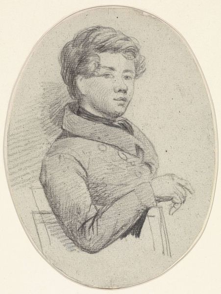 Editor: This is "Jongensportretje," or "Portrait of a Boy," by Pieter Gerardus van Os, likely made sometime between 1786 and 1839. It’s a drawing, seemingly with pencil and ink, and there's a certain wistful quality to the boy's expression. What do you see in this piece, especially considering its historical context? Curator: This intimate portrait offers a glimpse into the social constructions of childhood during the late 18th and early 19th centuries. The boy’s delicate features and carefully arranged clothing speak to a certain class status, reflecting how identity was visually constructed and communicated. Think about the role of portraiture during this era – who had access to it and what messages did it convey? Editor: I guess it was a status symbol. It feels… reserved. Curator: Exactly. The Romantic era embraced emotion, but often within very specific boundaries. This piece invites us to consider how social expectations regarding gender and class were imprinted upon individuals, even from a young age. Does this evoke for you, in any way, the limited agency children experienced, constrained by the expectations of their families and society? Editor: It does a bit, yes. There's a certain formality despite the medium being so...soft? Curator: And perhaps that tension speaks volumes. Consider the relationship between the artist, the sitter, and the societal gaze of the time. By critically examining artworks like this, we can begin to deconstruct the power dynamics embedded within the seemingly innocent image of a boy. Editor: That’s given me a completely new perspective on what I initially saw as a simple portrait. Curator: And hopefully prompts more questions than answers. The beauty of art history is that it allows us to continually re-evaluate our assumptions.