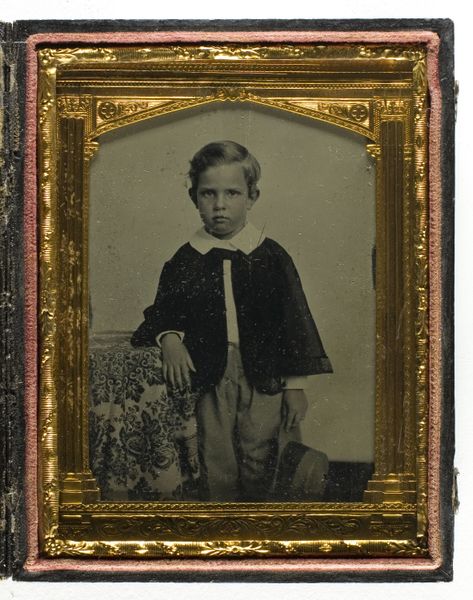 This daguerreotype, a photographic print from an unknown artist, presents a portrait of a boy. The most striking feature is the steady gaze of the boy. His eyes, fixed directly on the viewer, are windows to an inner world, a common motif throughout portraiture. Consider the ancient Roman tradition of the "imago," the death mask, and the Victorian post-mortem photography; both attempt to capture and preserve a likeness, to hold onto a fragment of a life. Here too, the unflinching gaze speaks to our desire to immortalize, to defy the relentless march of time. Think of the Fayum mummy portraits; these painted panels were attached to mummies, offering a vivid, lifelike representation of the deceased. The eyes, often wide and alert, were believed to ensure the deceased could still see and interact with the world of the living. These symbols are constantly repeated, and passed down through history. This boy’s direct, unwavering stare transcends the personal, tapping into a collective memory of loss, remembrance, and the yearning to connect with those who came before us.