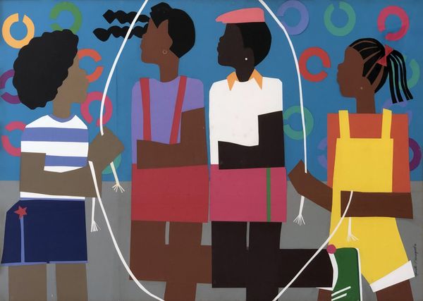 Romare Bearden created "Prevalence of Ritual III," as an exploration of the rituals of daily life within the African American community. Bearden came of age during the Harlem Renaissance and later was part of the Black Arts Movement which deeply influenced his artistic vision. His work often reflects his personal experiences and observations of Black culture. Here, the figures are rendered with a sense of dignity and introspection. The use of varied colors and textures creates a vibrant surface, that draws us into the intimate gathering, suggesting both a shared history and a collective identity. Bearden once said that he hoped to depict the "complexity" of African American life. His work invites us to consider how cultural practices shape individual and communal identities. Bearden underscores how the rituals of community life allow for the transmission of cultural memory and the assertion of identity in the face of systemic challenges.