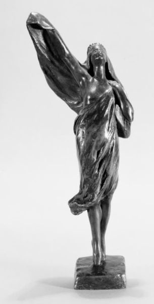 This small bronze sculpture, Faun, som bærer en krukke, was made by an anonymous artist. The piece reflects a fascination with classical antiquity that swept through Europe, inspiring artists to recreate and reinterpret classical themes. The sculpture depicts a faun, a mythological creature often associated with wildness, revelry, and nature. Yet, the faun carries a krukke, a jug or vase, suggesting both a relationship to civilization and a tension between nature and culture. Notice the faun's gaze, directed slightly upward and away, inviting viewers to contemplate the complex relationship between mythology, sexuality, and the natural world. Classical art often idealized the male form, celebrating youth, strength, and beauty, but this sculpture also hints at the inherent contradictions within these ideals. How might our understanding of gender and identity shape our reading of this classical figure? Think about how you feel looking at this faun, poised between worlds.