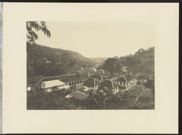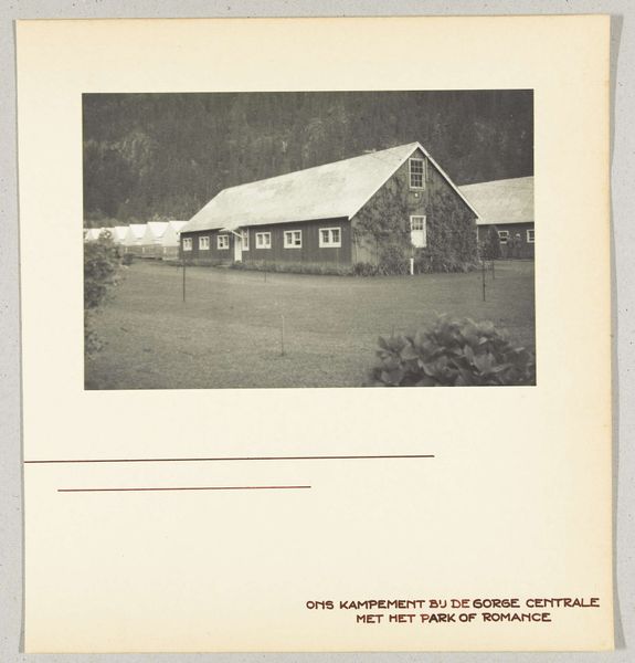 Curator: Welcome. Let’s turn our attention to “Kinaonderneming Daradjat,” a gelatin silver print dating to 1935. Editor: The mood of this photograph strikes me immediately as rather austere. There's a directness in the composition, with its stark contrasts between the industrial building and the surrounding landscape. Curator: Indeed. It's a remarkable study in contrasts. The photograph is sharply divided. We have the geometric lines of the building on one side, then, opposing those strict lines, we see the organic forms of nature in the background. The chimney piercing the sky—a vertical accent to the block-like building—further accentuates this push-and-pull between industrial aspiration and the grounded reality of the natural world. Editor: Chimneys frequently symbolize human ambition. The factory is dedicated to “Kina,” which speaks volumes to our culturally conditioned assumptions, in that “Kina” refers to quinine cultivation in colonial Indonesia. The building could stand as a metaphor for exploitation and the imposition of external control. It seems charged with an entire complex, morally fraught system of relations. Curator: Absolutely, the composition directs our eye along very definite planes: a clear delineation of man-made and the Earth's own making. Also note how the staircase is almost centrally placed, drawing us up—symbolically and structurally—into the industrial narrative. Editor: But the image refrains from either romanticizing or entirely condemning what it represents. Even visually, the stark tones lend a gravity, a sense of seriousness and responsibility to the narrative, whatever moral implications we apply. Curator: Consider, also, the light. The photographic conditions—those tonal qualities—enhance the objectivity. The soft gradations of light across the industrial edifice create a play, too, giving us an understanding that despite its brutal utility, it is an object created under certain historical conditions. It isn't out of time. Editor: The anonymous maker encourages our close scrutiny through this calibrated play of dark and light. What emerges in this play is that the photographic medium acts as a potent reminder of power dynamics during this era in colonial settings. A factory belching fumes stands in tension against the exploitation of people and land to generate materials we depend on, and that reality feels ever relevant today. Curator: I agree. The tensions and balances that mark this gelatin silver print remain with you.
