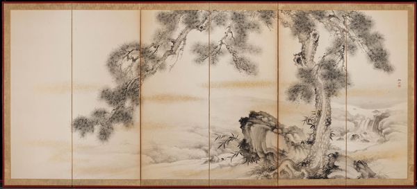 Nagasawa Rosetsu painted this landscape screen with ink on paper, likely in the late 18th century. At first glance, a flock of birds might simply enhance the scenery. Yet, the symbolic weight these birds carry is considerable, especially when seen within the context of the literati tradition the artist invokes. Consider how similar motifs appear in earlier Chinese paintings and poems. The image of birds in flight often symbolizes freedom, detachment from worldly concerns, or even the soul's journey. They can evoke a sense of melancholy, of leaving or longing, deeply resonating with the viewer's subconscious. We see this longing echoed in the figures of Su Shi and Tao Qian, historical symbols of the reclusive scholar. Their presence in this landscape suggests a yearning for a simpler, more natural existence, far from the complexities of court life. The cyclical return to nature, seen in the constant reappearance of these motifs throughout art history, reveals our shared human desire for peace and introspection.