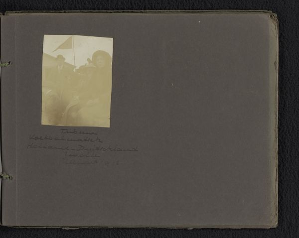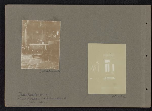 Editor: This is "Loentje en Willy Onnen in een interieur," a set of photographs dating from 1911-1912, attributed to Carolina Frederika Onnen. They have such a hazy, dreamlike quality... almost like memories fading with time. What do you make of these compositions? Curator: They’re evocative, aren't they? Like little glimpses into another era, whispering secrets. To me, they feel incredibly intimate – candid almost, even though they're posed. It's like stepping into their parlor, isn’t it? Three distinct glimpses. The figure with a giant fluffy dog seems very upper crust. Another featuring two sisters mimics the poses we see in formal painted portraits of the period but feel surprisingly informal. Then one shows the artist in casual garb surrounded by interior detritus of home life. It’s easy to think this might have been some experimentation. Editor: That's a great point. The way they seem almost casually arranged on the page… Were photography albums often displayed this way, almost like artistic studies? Curator: That's a brilliant question! Yes, photography was emerging as both a scientific medium *and* an artistic one, and albums like this blur the lines. Displaying images in different formats was a means to interpret relationships, just as you are seeing them now! The artist herself experimented a great deal with media, sometimes to comical effect! Editor: Experimentation... I like that. They’re not trying to be overly precious, capturing genuine everyday moments. Curator: Precisely! A moment that someone sought to savor or consider further by placing in this assemblage. And they are using photography for their own purposes – recording personal connections rather than historical figures or landscapes. They offer us not just a portrait, but a reflection. Editor: I guess that's the lasting appeal. It’s amazing to consider the impulse and purpose! Thanks for untangling some of that. Curator: It was fun taking this stroll through time together! Art never fails to deliver.