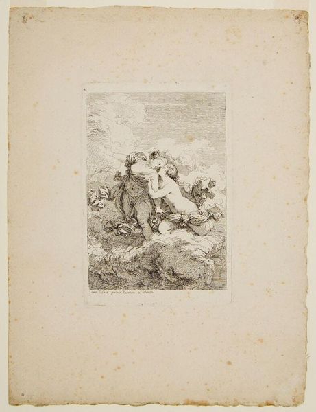 Editor: This is an untitled work by Joseph Andrews, who lived from 1806 to 1873. It depicts three figures in what appears to be a rural setting. What stands out to me is the artist's use of line and the composition's overall balance. What do you see here? Curator: Indeed, the stark contrast between the figures and the negative space creates a compelling tension. Notice how Andrews uses line to define form and texture, creating a sense of depth despite the limited tonal range. It's a masterful display of the structural elements. Editor: That’s interesting. So, the composition itself is the key to understanding the work, regardless of what it depicts? Curator: Precisely. The formal elements are the primary conveyors of meaning, directing the viewer's eye and shaping their experience. The subject becomes secondary to the execution. Editor: I see. Thank you for helping me see the nuances in the work. Curator: My pleasure. The semiotic interplay of lines and shapes is indeed intriguing.