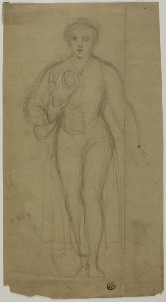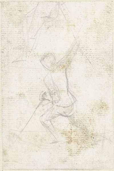 Editor: This is "Hurkende vrouw," or "Squatting Woman," a pencil drawing from 1855 by Anton Mauve, housed here at the Rijksmuseum. It has a haunting, fleeting quality about it because the lines are so faint, like a memory fading. What do you see in this piece? Curator: It’s fascinating how Mauve captures not just a woman, but a sense of being, almost ephemeral. The squatting position itself is a potent symbol across cultures, often linked to labor, domesticity, and a close connection to the earth. This image invites us to contemplate the lived experience of women in 19th-century Holland. What feelings does the posture evoke in you? Editor: I immediately feel empathy for her. There's a sense of weariness, but also a quiet strength. It’s like she is paused in the midst of everyday activity. The loose lines almost make her invisible, one of the many unacknowledged people of the era. Curator: Exactly! The ambiguity in the lines, the lack of distinct facial features – it encourages the viewer to project their own understanding of hardship and resilience. Do you think that by not depicting details, Mauve amplified her symbolic power? Editor: Absolutely. The sketch feels less like an individual portrait and more like a universal representation of women’s labor. It transcends time in a way a highly detailed painting might not. I initially felt sadness, but the symbolism gives the drawing a quiet power, as you suggested. Curator: It's interesting to consider how Mauve uses a seemingly simple sketch to access such deep wells of cultural memory. We recognize something fundamental, something enduring, in that posture, don't we? Editor: I do. Thank you, it definitely changed the way I see the drawing. Curator: And you for me as well. It’s enriching to discover how a simple pencil drawing can evoke such resonant, layered meaning.