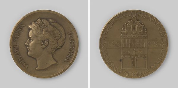 This is Jacob Jan van Goor’s commemorative medal for the inauguration of the Royal Colonial Institute in Amsterdam. Its circular form and the relief details remind me of process: how each strike of the die transforms the metal. There’s a tension here between the architecture’s solidity and the ephemerality of the medal itself. The Institute's facade is meticulously rendered; each window and brick suggests permanence. Flip to the other side, and you find an inscription surrounded by foliage. I see the phrase, "Het daghet in den Oosten," or, "The day dawns in the East." These words and their botanical frame strike me as both aspirational and deeply ironic, given the history of Dutch colonialism. Van Goor was a medalist, not necessarily a radical. Yet, like any artwork, this object invites multiple interpretations. It’s a celebration, but also a historical marker, isn’t it? One that prompts us to consider the complex relationship between progress, representation, and the legacies of empire.