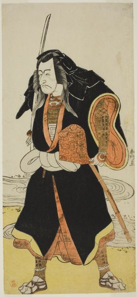 This woodblock print by Tōshūsai Sharaku depicts the actor Morita Kan'ya VIII as Genkaibō Ajari, featuring prominent symbols that invite deeper contemplation. The sword, held firmly across the actor's chest, is not merely a prop but a potent symbol of authority, of martial prowess, and, paradoxically, of sacrifice. Consider the motif of the sword across cultures, from the ceremonial blades of ancient Rome to the mythical Excalibur. In each instance, the sword transcends its utilitarian function, embodying power, justice, and the readiness to defend sacred values. The actor's intense gaze and the determined set of his jaw amplify the emotional tension, drawing us into the psychological drama of the Kabuki theater. The symbolism of the sword reminds us of the psychological depths of human conflict and resolution. It is a reminder that the images we create and observe are not merely aesthetic but are imbued with layers of meaning that echo through time.