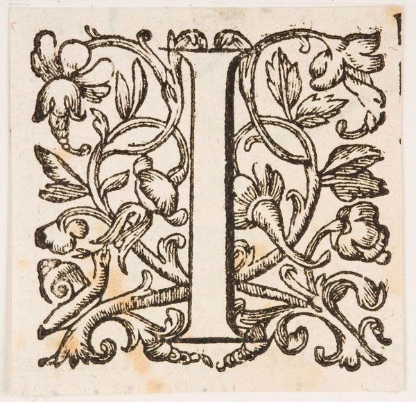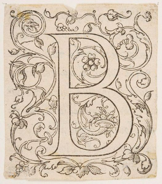 Editor: This intriguing initial, Letter B, is by an anonymous artist. I am struck by the way the letter is integrated with mythical figures and flourishing botanical elements. What symbols do you see embedded here? Curator: The initial 'B' itself, elaborated with foliage and winged figures, speaks to a tradition of illuminated manuscripts, a cultural memory of handcrafted knowledge and divine inspiration. The figures, possibly angels or putti, herald not only the letter, but perhaps the word it begins. What word do you imagine it might introduce? Editor: Perhaps 'Beauty' or 'Beginning?' It makes me wonder how this seemingly simple letter form can contain so much cultural history. Curator: Exactly! It reminds us that even the smallest image can be a vessel for profound meaning, carrying echoes of the past.