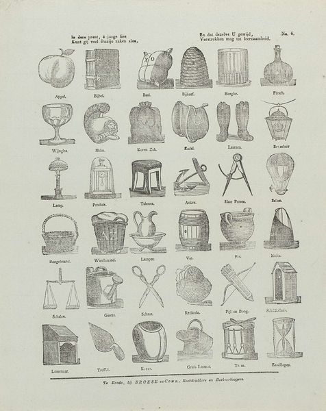 Editor: Here we have a print titled "Kind'ren ziet dit zijn geen prullen…," dating from between 1819 and 1840, and created by Alexander Cranendoncq. It seems to be an engraving of various food items. I'm struck by the sheer abundance depicted, but I wonder, what’s the story behind all these illustrations? How do you interpret this work? Curator: Well, it’s crucial to understand the context in which this print was created. Think about early 19th-century Dutch society, with its complex class structures. This image, overflowing with edibles, was intended for children. Doesn’t that say something about societal values and maybe even social disparities at the time? Editor: It’s like… are they trying to educate kids about food, or show off what they *could* have? Curator: Precisely. It reflects a didactic purpose – the artist explicitly says in the print, ‘children, these are not trinkets/ trifles / toys/ useless things, but items worth enjoying.” Also, gender might play a role here; consider who would be educating the children at that time, and what messages about abundance they might have wanted to convey. Who has access to this knowledge, and what does that signify? What values does this print teach the children, explicitly or implicitly? Editor: So, this isn't just a random assortment of food. It's communicating ideas about social roles and expectations. Curator: Absolutely. Consider how food is presented, what each individual fruit of vegetable stands for. And that Dutch Golden Age influence reminds us to ask - for whom was this abundance? This piece pushes us to think about what and whose story is being told through these carefully selected foods. Editor: I didn’t think about it like that at all. I was focused on the images themselves, not the layers of meaning they carry. Curator: Exactly! That's the beauty of art history. Every piece is a reflection of its time and the power structures within it. I've enjoyed our conversation – thank you! Editor: Thank you; this gives me much to consider!