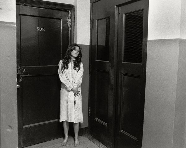This is Cindy Sherman's Untitled Film Still #27b, a photograph playing with the conventions of cinema and identity. The monochrome tones create a strong sense of atmosphere, and you know, photography, like painting, is a process. The texture in this piece comes from the graininess of the film, giving it a raw, almost documentary feel. The light and shadow play a big role, shaping the space and adding to the sense of unease. Check out the way the light catches on the bucket hanging on the wall, drawing your eye upwards, creating a kind of visual suspense. It reminds me of early Hitchcock, where the mundane becomes menacing, but of course, Sherman's work is also a dialogue with artists like Eleanor Antin, who explored identity through performance. Sherman embraces ambiguity here, inviting us to project our own stories onto the image. It's a reminder that art isn't about answers, but about sparking conversations and questions.