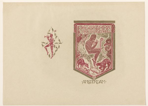 Reinier Willem Petrus de Vries created this design for a title page and publisher's emblem around the turn of the twentieth century. The stylized, symmetrical composition and the use of bold lines are characteristic of the Art Nouveau movement, which sought to integrate art into everyday life. Considered within the context of Dutch cultural history, the design reflects the revival of interest in national identity and traditions that took place in the Netherlands at the time. The emblem features the coat of arms of Amsterdam, with the motto "Constantia et Labore," meaning "Constancy and Labor." This motto embodies the Protestant work ethic that defined the Dutch bourgeoisie during the period. The inclusion of such symbols in graphic design served to promote a sense of national pride and unity. By studying the history of graphic design, we can gain insights into the social, cultural, and political values of the time.