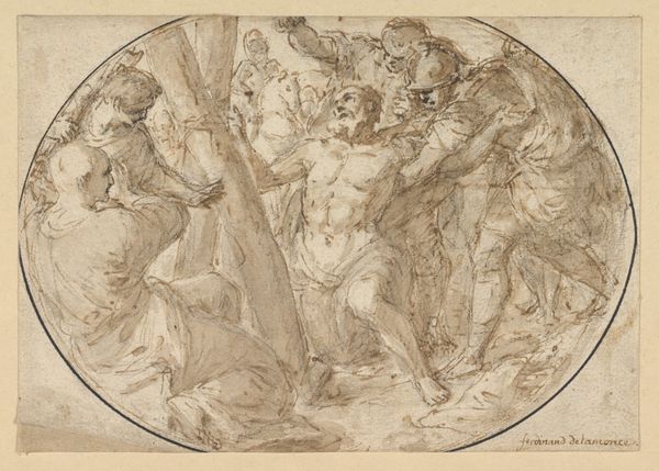 Editor: Here we have "The Gathering of Manna," an etching made around 1560. It looks like it depicts a chaotic biblical scene. The people seem to be reaching for something falling from above. What do you see in this piece? Curator: Well, immediately, my mind is drawn to the recurring motif of the vessel – the containers, baskets, urns. They are more than just tools for collecting food; they represent the human capacity to receive divine grace, and the responsibility to share it. Consider the direction and flow of lines, nearly all focused and facing toward the vessel held up and presented. Do you see how it emphasizes their cultural and communal importance? Editor: I do, especially since there are so many people crowding around. The act of "gathering" becomes really important when everyone is depending on it. So, manna is the symbol for divine grace in this context? Curator: Precisely. Think of manna, this miraculous sustenance, as a symbol deeply rooted in collective memory. It's a direct link to survival, to dependence on something beyond human control. Notice how the expressions of the figures range from desperate to grateful? That range is intentionally exploring the psychology of faith and reliance. Editor: That’s interesting! It makes me think about the symbolic weight of food and nourishment in art throughout history, a sort of collective history expressed through images. I’ll look for similar patterns and themes in my own work now! Curator: Indeed, and recognizing these persistent symbols enriches our understanding, adding layers of cultural context each time we see it.