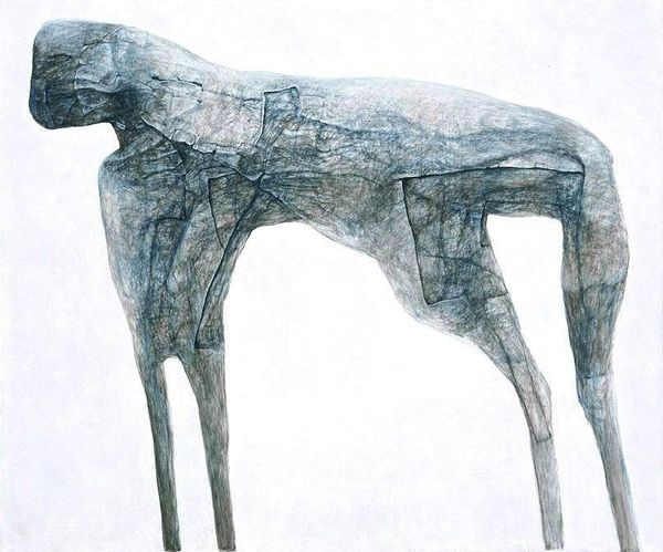 Editor: This “Untitled” piece, apparently made with oil painting and charcoal in a dry-media impasto style, depicts a horse and rider, but there’s a distinct roughness to the whole piece. The figures look almost carved from stone, yet the impasto technique gives it this wonderful texture. How do we unpack what this choice of materials and style mean? Curator: Well, consider the labor inherent in that combination of techniques. The artist, Beksinski, built up this heavily textured surface—that's demanding work. Then, think about the choice of charcoal and oil. What statements might the artist be trying to make about traditional forms through the means of production and application here? Editor: That’s an interesting angle. I guess it moves away from the usual polished imagery associated with equestrian portraiture. Are you suggesting it’s a conscious rejection of idealized representations, replaced by a focus on raw material and labor? Curator: Exactly! The “rough brush stroke” becomes more than just a visual element, right? Think about what Expressionism does here; it also communicates something deeper about our human and perhaps social interaction with beasts of burden; or the labor they support? Editor: So, instead of seeing a celebration of power or grace, we’re confronted with the physical process, the materiality, and maybe even the exploitation embedded in that image? Curator: Precisely! We’re made to consider the making of art and its social context. That heavy impasto surface isn't just about texture. How might that materiality challenge ideas about high art vs. craft here? Editor: I hadn't really thought about it like that, I just saw it as "interesting" but understanding that it might speak of commentary, is extremely insightful and changes how I understand the work, considerably! Curator: Art always requires an awareness of these different elements; a single choice could have such reverberations of meaning and interpretation, once one engages in the wider history.