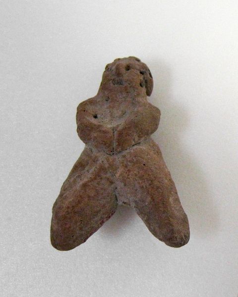 Editor: This miniature ceramic figurine, a Tlatilco sculpture from around 1500, is currently housed in the Minneapolis Institute of Art. It’s so small and unassuming, yet there’s a real sense of ancient ritual about it. What do you make of its place in history? Curator: Well, it's crucial to consider the socio-cultural context in which it was created. The Tlatilco people, residing in the Valley of Mexico, produced many of these figurines. They weren't mere decorations; rather, they played significant roles in their society. Think about where these objects were found, mostly in burial sites. What does that suggest? Editor: That they were used in burial rituals, perhaps offerings to the dead, or symbols of status in the afterlife? Curator: Precisely. These figurines tell us about Tlatilco beliefs, especially concerning fertility and the cycle of life and death. The public display of these objects now, in a museum, presents a stark contrast to their original private, sacred purpose. Does the display perhaps sanitize the ritual meaning, or does it create opportunities for cross-cultural dialogue? Editor: I see what you mean. In a museum, its artistic merit is foregrounded, whereas in its original context, its spiritual function was primary. So, its meaning shifts depending on its setting and reception. I hadn’t thought about it that way before. Curator: Exactly, museums play a vital role in shaping the narratives surrounding these artifacts. We mediate the past. The power of imagery and where and how it’s shown has to be critically evaluated. What have you learned about pre-Columbian art through this exercise? Editor: I learned that art objects carry different social meanings over time depending on how the objects are being framed, used and displayed. Curator: Indeed, context is everything.
