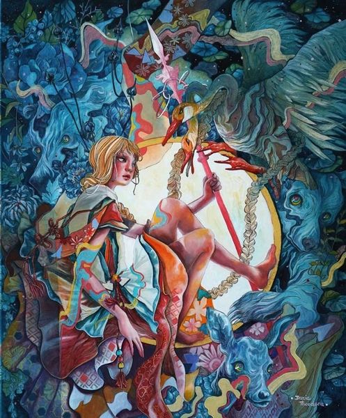 Daria Theodora created Osiris the Sky Dragon using watercolor, a medium known for its fluidity and translucence. The artist manipulates the watercolor's inherent qualities to create a dreamlike atmosphere. The washes of color, layered upon one another, give the dragon and the surrounding clouds a sense of depth and movement. The smooth gradients and soft edges evoke a sense of ethereal beauty. Theodora also employs fine linework to define the dragon's features and the intricate details of the clouds, showcasing a mastery of technique. The careful application of watercolor allows Theodora to imbue the artwork with cultural significance, echoing traditional East Asian ink wash painting. The process of layering washes, a meticulous and time-consuming task, emphasizes the amount of labor and skill involved in creating such a work. By focusing on the materials and processes involved in its creation, we can appreciate the skill, effort, and artistry that went into making this artwork.