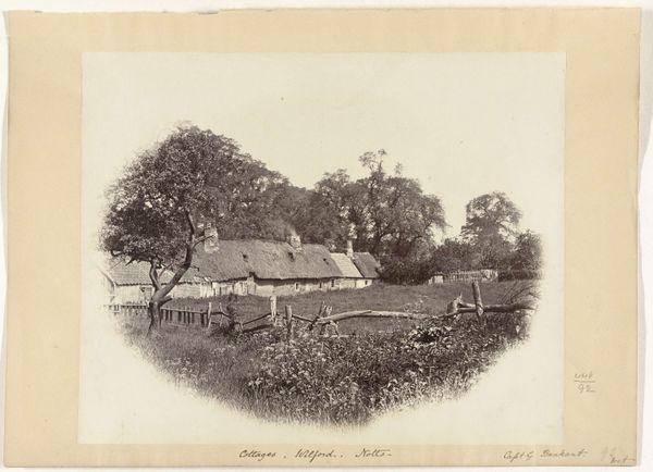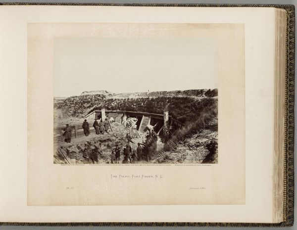 Editor: This is Timothy O'Sullivan's photograph, "View on the Appomattox River, Near Campbell's Bridge, Petersburg, VA". I find the strong horizontals and verticals of the buildings really striking. What do you see in this piece? Curator: The interplay of light and shadow articulates the forms, lending a sense of depth. Observe the subtle tonal gradations, particularly in the foliage. How does the composition guide your eye through the scene? Editor: I think the diagonal line of the railway draws me in, then the buildings lead my eye across the landscape. It’s very balanced. Curator: Precisely. The formal elements create a structured, yet visually engaging composition. This suggests a deliberate arrangement by the artist, don’t you think? Editor: Absolutely. Paying attention to those formal qualities really enhances my understanding of the photograph. Curator: Indeed, a keen observation of form enables a deeper appreciation.