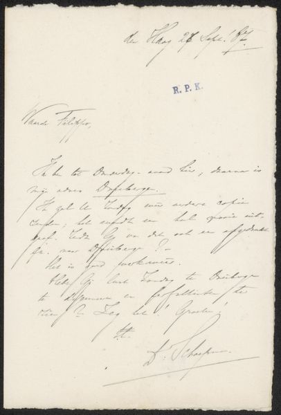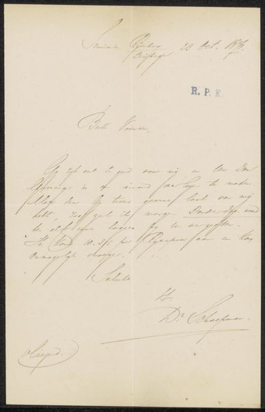 This is a letter to Filippo Tessaro, written by Herman Johannes Aloysius Maria Schaepman, likely penned in the late 19th century, using ink on paper. Schaepman was a prominent Dutch Roman Catholic priest, politician, and poet during a time of significant social and political change in the Netherlands. His public role as a staunch defender of Catholic interests within the Dutch parliament is crucial to understanding this artifact. The handwritten nature of the letter reveals much about the social history of communication. In an era before widespread typewriters, the act of writing was a skill closely tied to social class and education. The language of the letter is also important. Further research would be needed to translate the contents, but we can use digital archives of historical documents, dictionaries of old Dutch terms, and biographies of Schaepman to better understand the social, cultural and institutional context of this letter.