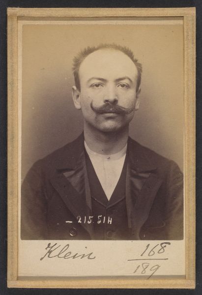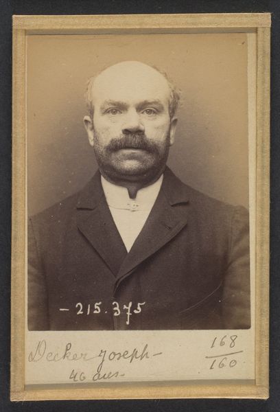 This mugshot, titled 'Favre. Sébastien. 36 ans, né à St Étienne (Loire). Négociant. Port d'arme prohibée, anarchiste. 20/2/94,' was created by Alphonse Bertillon. It captures a moment rife with the anxieties of late 19th-century France. The image is a product of Bertillon's 'portrait parlé,' a system designed to categorize and control individuals through meticulous physical measurement and documentation. Favre, identified as a 36-year-old merchant from St. Étienne, is branded an anarchist, a term heavy with political and social implications during a period of intense ideological conflict. We see more than just a face; we witness the intersection of identity, power, and resistance. Favre's alleged crime—possession of a prohibited weapon—becomes secondary to his political label, highlighting the era’s fear of dissent. The photograph serves as both record and indictment, freezing Favre in a moment of state-defined identity. It prompts us to reflect on how society classifies and judges its members.