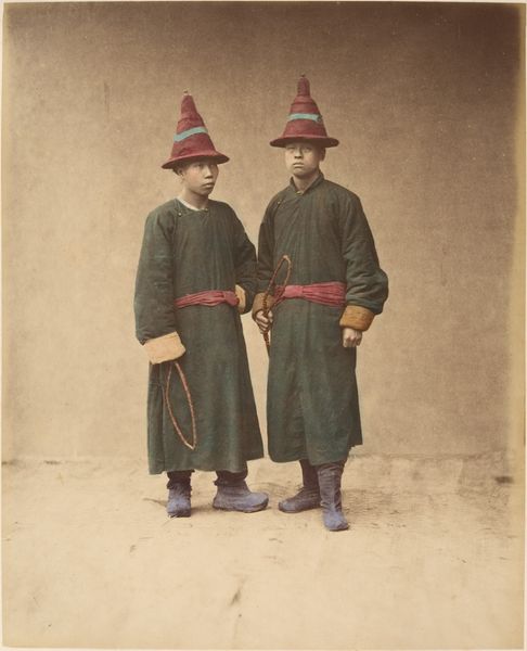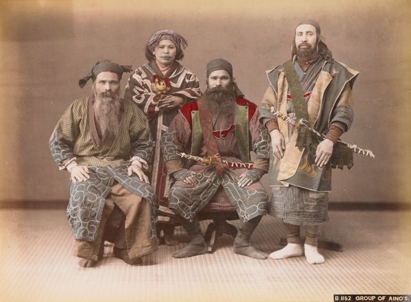 This photograph captures two Ainu men, their figures stark against a painted backdrop of Mount Fuji. The men carry a spear and bow, tools of their trade. The Ainu people, indigenous to Japan, hold a rich cultural heritage reflected in their attire and customs. Notice how the Ainu men appear almost like statues, embodying a quiet, stoic presence. Think back to classical antiquity, to the Roman busts. Here too, we see a similar attempt at portraying dignity, in a way that transcends the individual and speaks to ancestral identity. Consider also the image of Mount Fuji in the background. Mountains throughout time have been attributed a symbolic meaning, and used to denote the natural world as something sacred. Its presence here suggests a world of shared mythic narratives, illustrating how our collective subconscious recognizes and responds to such elemental symbols. These motifs carry an emotional weight. In viewing them, we are tapping into deeply rooted human experiences, re-evaluating their significance across time.