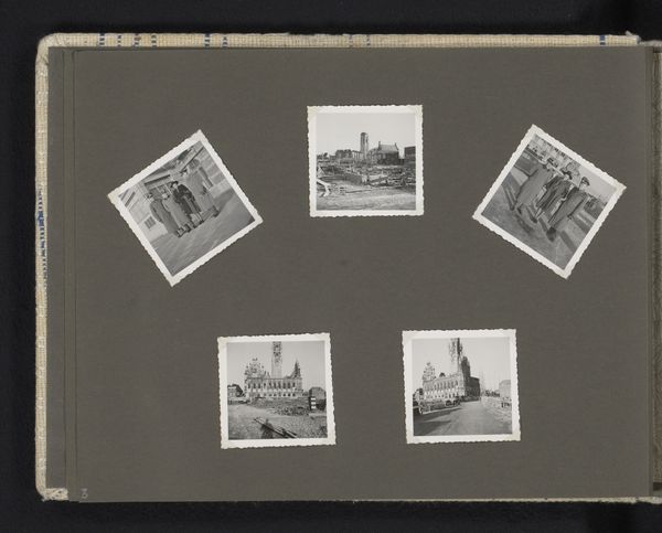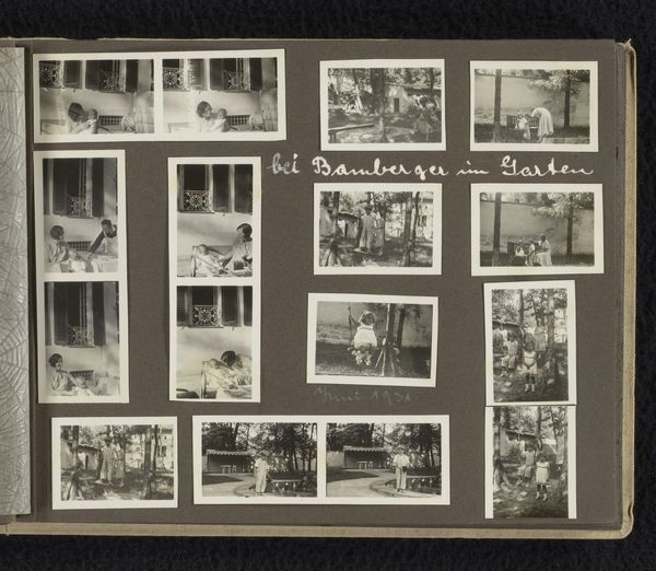 Curator: These gelatin-silver prints, taken between 1931 and 1936, capture Isabel Wachenheimer feeding pigeons at Feldherrnhalleplatz in Munich. It's a collection of sequential images, almost like a film strip. What's your immediate reaction to it? Editor: The immediate feeling is one of gentle domesticity sharply juxtaposed with looming architecture. There’s a certain everyday-ness framed against something far more imposing. Curator: Indeed. Considering the historical context, this domesticity gains further layers. The Wachenheimer family was Jewish. Documenting everyday moments such as these, especially with rising antisemitism, could be seen as an act of quiet resistance or a way to reclaim their narrative amidst increasing persecution. The images become evidence of a life that was both ordinary and extraordinary. Editor: I see it, yes, the silver gelatin print, as a process, involved labor and chemicals; it speaks to a specific time when photography had a tangible, almost alchemical quality. This labor of creating family snapshots, however modest, reveals an intention to preserve not just memory, but their presence in a world intent on erasure. Curator: Absolutely. The Feldherrnhalleplatz itself is laden with historical weight. The location was infamously the site of the Beer Hall Putsch in 1923. Placing Isabel Wachenheimer there, amidst the pigeons, shifts the focus to her personal experience, even subverting the space's loaded symbolism. Editor: And let's not forget the materiality of the birdseed. The act of feeding; providing sustenance in a public square, points toward generosity in the face of increasing scarcity of both food and tolerance during this period. Feeding the birds becomes almost an act of material defiance. Curator: Considering Wachenheimer's Jewish identity, it speaks to the broader issues of visibility, marginalization, and resilience. This location has witnessed historical shifts. The photograph doesn't offer a romantic depiction; it reveals a life existing despite and within a volatile social reality. Editor: Exactly. Ultimately, analyzing these photographs emphasizes how simple acts—the processing of silver, the offering of birdseed—became tools for resisting dehumanization. Each image is testament to lives determined to leave a trace in the face of destruction.