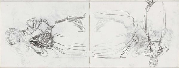 Curator: Isaac Israels’ "Liggende Vrouw," housed here at the Rijksmuseum, dates sometime between 1875 and 1934. What strikes you about this sketch? Editor: The immediate impression is one of vulnerability, almost voyeuristic. It's a fleeting capture, an intimate moment made public, which raises interesting questions about the female gaze. Curator: Precisely! Note the stark contrast of the defined facial features and upper body and the almost complete disintegration of form as the eye moves further down the body. How do you read that? Editor: I see it as commentary on the male gaze inherent to classical artistic training and art-making. It prioritizes the face – often linked to identity and consciousness – over the body, reinforcing an unequal relationship. The sketchiness denies solidity. Curator: Indeed, it's as if the physical form is deliberately rendered secondary to the perceived essence of the subject. Israels utilizes a fragmented composition to draw the viewer's attention to certain planes. Semiotically, one might say he directs us towards those traits culturally designated as feminine. The soft flowing lines, for example. Editor: And we can also consider how the lack of background situates her in this in-between space – between public and private, present and absent. Is she even aware of being watched, or is this a subconscious manifestation of internalized societal pressure? What is she thinking? Curator: An important question that the artist has perhaps intentionally left open for debate, and yet consider the formal choices made. Israels teases us with a completed idea. Why not finish the job? Is it a case of lacking skills or making an intentional gesture? The texture of the quick sketch-like quality creates a lively rhythm for the eye. Editor: Maybe it’s an unfinished statement – not quite rebellion but also not complicit acceptance. The sketch can reflect many women’s struggle with their identity that society puts upon them and also the desire for self-determination, leaving me with complex feeling to grapple with and feeling sympathetic to her experience. Curator: A lovely way to close us out. In scrutinizing both intention and presentation, Israels pushes the limits of subject and artist. Editor: Right, thank you. His initial drawing evokes dialogue far beyond what is visually represented, opening many lines of inquiry and social commentary.