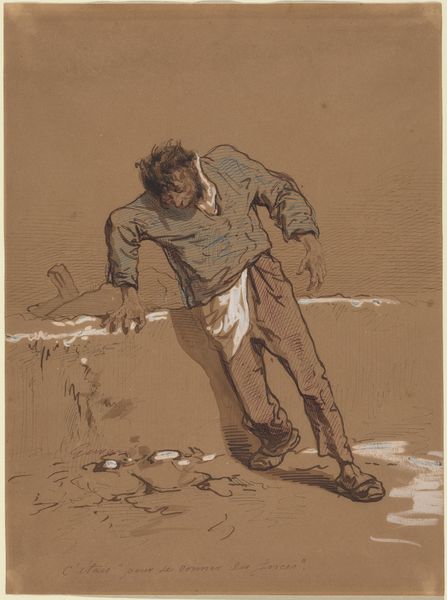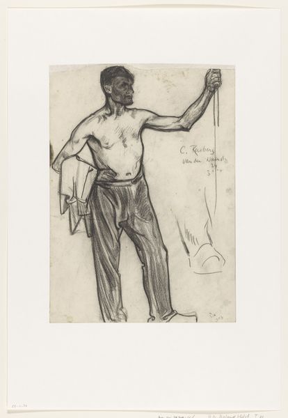 Pieter de Josselin de Jong made this pencil drawing, entitled 'Zaaier', meaning 'Sower', around the turn of the 20th century in the Netherlands. It captures a figure in motion, a sower walking across a field. What does this image tell us about the social conditions of its time? The sower is depicted in simple, functional clothing and wooden shoes, suggesting a connection to rural life and the working class. During this period, the Netherlands was undergoing significant social and economic changes, with a growing divide between urban and rural populations. Images of agricultural workers, like this one, reflect a broader cultural interest in the lives of ordinary people and the value of manual labor. The Rijksmuseum, where this drawing is housed, plays a crucial role in shaping our understanding of Dutch history and culture. By displaying works like 'Zaaier', the museum invites us to consider the complex social and economic forces that have shaped Dutch society. Further research into the artist's biography, archival documents, and contemporary social commentary can provide a deeper understanding of this artwork's meaning and significance.