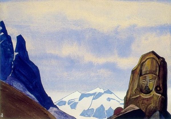 Nicholas Roerich painted "Pilgrim" using tempera on canvas. There's something immediate about this work. Look at the way Roerich builds the landscape, using a simple layering of colours. The marks feel intuitive, like the painting grew organically. And the palette! The colours vibrate; pink mountains, a turquoise sky. The paint application is smooth, almost translucent in areas, giving a sense of ethereal light. Notice the textures in the lower part of the mountain, how the colours blend, creating depth with a limited range. Roerich wasn't interested in photo-realism; he was interested in a feeling, an impression. In that little figure riding an animal down there, you can almost feel the journey. Roerich's spiritual quest resonates through his work. You might think of Marsden Hartley. Both artists embrace a sense of mystical symbolism and a simplified visual language to convey deeper truths. Like with any great painting, there’s a sense of possibility. An openness that invites your own interpretation.