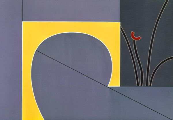 Curator: Welcome. Before us hangs L\u00e1szl\u00f3 Moholy-Nagy's "Composition G4," crafted in 1926, rendered with acrylic paint. A key example from his constructivist period. What's your immediate take? Editor: My first impression is one of dynamic tension, visually vibrating from the strong use of red. There’s a stark contrast, however, between the intense backdrop and the lone, pale blue circle; almost a relief in the visual space. Curator: The interplay of geometric forms really embodies the spirit of the Bauhaus movement, which deeply influenced Moholy-Nagy. This piece demonstrates his pursuit of pure abstraction and an embrace of industrial aesthetics in art. How do you see that connection influencing the piece? Editor: Absolutely. It also seems that this was the historical context that was experimenting with non-objective representation, but I see echoes of Russian Constructivism with its goal to reflect modern industrial society. I can also argue for its political dimension. It offers itself up, openly and democratically as opposed to art rooted in inaccessible history and myth, no? Curator: I would say the use of the grid system, the layering of shapes—they all speak to a fascination with machines and mass production that defined this era. The application of stencils allows for these crisp shapes and gradients. In art historical terms, how does the materiality play a role in reading the work? Editor: For sure! Consider, too, how the lack of visible brushstrokes intentionally obscures the artist's hand. Its opaqueness and almost translucent gradients achieve a dynamic effect, like light moving over machine surfaces and bringing together two critical points on abstraction. And in its embrace of this modern aesthetic, what social conventions is it hoping to dissolve? What norms did they intend to fight with this break in aesthetic philosophy? Curator: That question, really, strikes at the heart of this work, pushing towards art’s broader role. It invites critical questioning about art’s engagement with technology and industry that continues to this day. Editor: Precisely! By diving into these geometric relationships and challenging artistic conventions, we find reflections of progress and societal evolution, still very much relevant in our modern landscape.