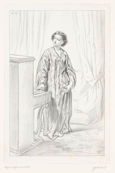 Editor: This is "Small Business" by Paul Gavarni. It's a detailed sketch, seemingly of a young woman selling balloons. What cultural echoes do you hear in this image? Curator: Notice how the balloons float, almost like a cluster of hopes or dreams. The vendor's humble attire contrasts with the fleeting joy these balloons represent. Does this tension between aspiration and reality resonate with you? Editor: Definitely. It feels very human. There's a sense of both longing and resilience captured in the image. Curator: Precisely. And the balloons themselves, as symbols of levity, speak to our enduring desire to rise above our circumstances, however briefly. It makes you consider how much things have changed... or stayed the same. Editor: I see that now. Thanks for pointing it out!
