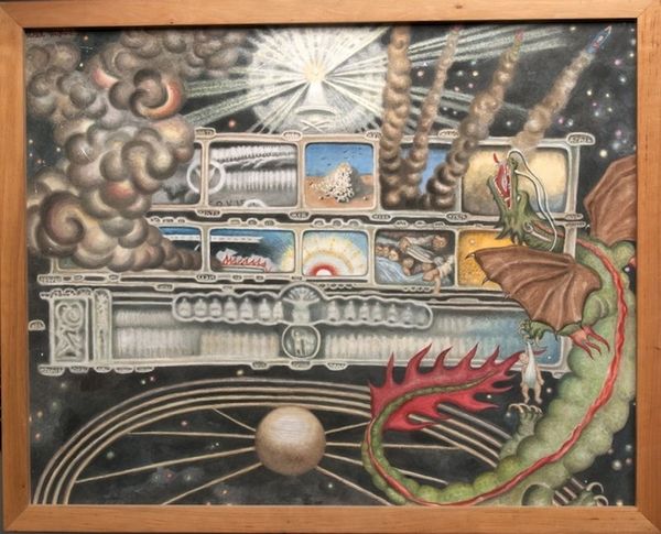 Arsen Savadov created 'Gimn of Poseidon', a painting that invites us into a world where mythology meets contemporary anxieties. Savadov emerged as an artist during the collapse of the Soviet Union. His work often grapples with the reshaping of identity in a post-Soviet world. Here, the mythical Poseidon's realm is reimagined through a lens of cultural and political upheaval. Three women sit inside what seems to be the jaws of a monster. They appear melancholic, draped in classical-style dresses, embodying a sense of loss. This can be seen as a metaphor for the loss of cultural certainties. The ships sailing in the background have Soviet flags on them. It is a clear indication of Savadov's commentary on the USSR's decline and the reshaping of national identity. Savadov once said, "I am interested in the intersection of different cultures, of different times." This intersection is evident as he blends classical motifs with symbols of Soviet history, creating a dreamlike, unsettling narrative. 'Gimn of Poseidon' compels us to reflect on the complexities of identity, history, and the shifting sands of cultural memory.