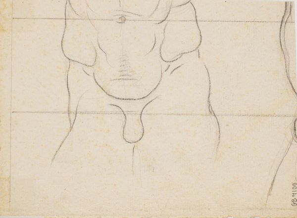 Curator: Here we have Aubrey Beardsley's "Crouching Midget," likely rendered in pen and ink sometime between 1892 and 1898. Quite a stark image, wouldn’t you agree? Editor: Striking! I'm immediately drawn to the figure's almost grotesque, yet compelling presence. There's a defiant, almost unsettling quality in its gaze that demands attention. It feels deliberately provocative. Curator: Absolutely. Notice how Beardsley employs symbolism here; the small skull adorning what one might call the figure's head-covering alludes to mortality and perhaps the darker aspects of existence. What cultural weight do you see reflected here? Editor: The grotesque, and particularly the sexually grotesque, in art and literature was often employed as a form of social commentary in the late 19th century. It’s about pushing boundaries, challenging conventional notions of beauty and propriety within Victorian society. Beardsley’s use of the androgynous body confronts normative gender ideals, making space to reclaim repressed identities and agency. Curator: Good point. And there's such economy of line. The minimalism is rather suggestive. I would wager he's digging at some archetypal human anxiety. He invites our viewers to examine the tension of childhood innocence corrupted. Editor: Indeed, and the intentional crudeness in this seemingly "initial sketch" reflects a wider trend in fin-de-siècle art that attempts to disrupt middle class sensibility, to dismantle idealized bodies within painting and drawing. The so called "Midget" and their infantilized sexuality might well be about unsettling expectations around the human form, creating room for broader, less constrained ways of seeing ourselves. Curator: It does have a sense of rebellion against societal norms doesn’t it? But the crouching posture itself implies vulnerability...almost like the subject's attempting to conceal. Do you read the pose that way, as protective, fearful, or defiant? Editor: All of the above, I think. The complexity of the emotional expression here is tied to Beardsley's moment in history, in which the dominant visual culture was beginning to open to diverse forms. Here he represents vulnerability with undeniable strength; perhaps that is how "Crouching Midget" critiques traditional portrayals and stereotypes while pointing toward possibilities for empowered subjectivities. Curator: Hmm, so there is that sense of nascent liberation here... Perhaps we should not underestimate Beardsley's sensitivity to the anxieties and nascent desires percolating below the surface of Victorian society. It's a powerful snapshot into a world on the cusp of immense change. Editor: Precisely, by looking back and unearthing symbols through pieces such as "Crouching Midget", Beardsley provides tools for charting forward with fresh ways of seeing and existing.