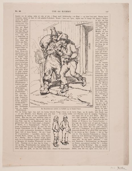 Curator: Here we have Honoré Daumier’s lithograph, "Décidément on ne peut pas…" created in 1870. It’s a biting commentary from a tumultuous time. My first impression is one of grim humor, almost grotesque. The figures are so caricatured; their faces pulled into these strange, almost inhuman expressions. There’s something deeply unsettling about it. Editor: Absolutely. The work’s context is key here. Daumier created this print amidst the Franco-Prussian War, a time when nationalistic fervor clashed starkly with the grim realities on the ground. The war highlighted a crisis of leadership and challenged France’s image in Europe. We see that frustration in the cartoon. Curator: It’s a lithograph, so we see a lot of detailed line work that contributes to this sense of tension, the paper itself lending it an urgency akin to a newspaper illustration, fitting since it was made for a Parisian news journal. Editor: The caricature certainly hits home, the faces practically melt before your eyes and that says so much. Given Daumier's style, this exaggerates the men's expressions, highlighting arrogance and absurdity. One can feel the social commentary being put in motion! The title translates roughly to "Decidedly, one can't make them swallow a duck for a pigeon". Curator: I suppose the title may suggest someone trying to put up the idea of swapping lesser terms, for grander ideas, by political discourse! Given Daumier's well documented political activism, its likely he meant this towards Napoleon the III Editor: The class tensions of the period resonate powerfully; we’re compelled to view how power structures oppress people! He critiques the societal structures with such a focus on equality, resistance, and transformation; one sees Daumier champion marginalized communities, providing them with the support of the community he belonged to. Curator: Definitely. Knowing Daumier, it underscores a wider crisis of leadership during a key moment in modern France, one of intense industrial and political growth, where public role of art in politics of imagery truly played an important part. It forces us to look critically at systems of power, in France and everywhere else. Editor: Well, seeing it now contextualized, I see this piece of art more deeply! The art of protest and a powerful way of seeing one’s own role within it; Daumier pushes those ideas and continues to remain culturally relevant!