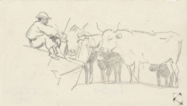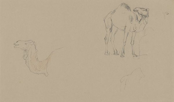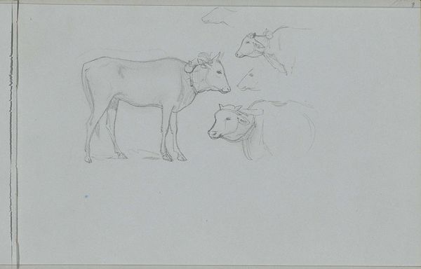 Editor: So, here we have John Singer Sargent's "Sketches of Cows," just a little pencil work on paper, currently housed at the Harvard Art Museums. It feels...quiet, almost meditative. What do you see in this piece? Curator: Ah, Sargent's cows. They remind me of lazy summer afternoons, don't they? It's more than just cows, it's Sargent flexing his observational muscle. These sketches are all about capturing the essence of form with the barest of lines. Do you feel the weight of them, even in their simplicity? Editor: Yes, I see what you mean. There's a certain solidity despite the sketchiness. It’s like he's found the soul of the cow in a few strokes. I wouldn't expect a society portraitist to be this interested in farm animals! Curator: Exactly! It's that surprising intimacy. Maybe that's what's so charming about this piece. It's Sargent just...observing, unfiltered. Editor: That's so true. I'll never look at a Sargent painting the same way again. Curator: Wonderful! That's the power of a little sketch, isn't it?