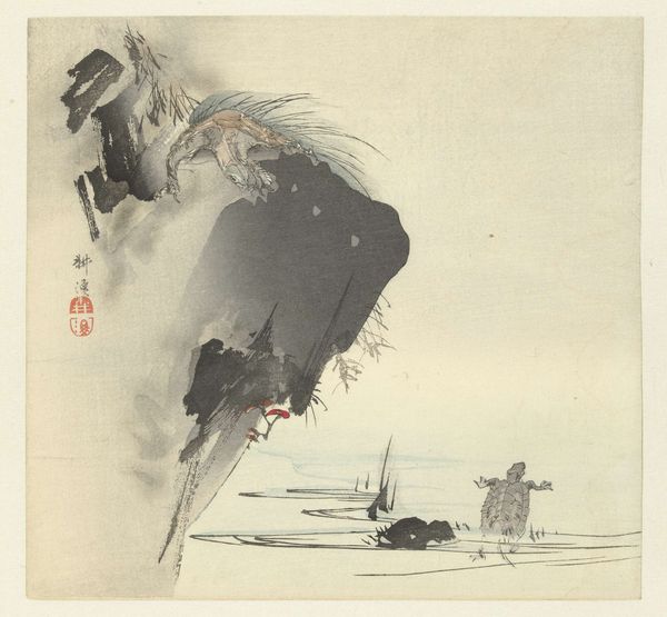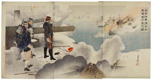 Curator: Ogata Gekko's 1894 color woodblock print, "Onoguchi, de dood trotserend, om de poort van het vijandelijke fort op te blazen" offers a glimpse into a specific moment in military history, currently residing here at the Rijksmuseum. My immediate impression is of explosive action framed within delicate, almost dreamlike pastels. Editor: The first thing that strikes me is that paradox – this horrific depiction of war, softened by the airy, pastel-washed rendering. It immediately provokes questions of the artist's intent, of the ways in which even violent events are framed, particularly through state narratives and image production. Curator: It's important to remember that this print was produced during the First Sino-Japanese War. Gekko, like many artists at the time, created works that were, in part, a reflection of Japan's rising military power and nationalistic fervor. We see that, certainly, in the glorification of this soldier's apparent self-sacrifice. Editor: Exactly. But the choice of Ukiyo-e, typically associated with the depiction of idealized beauty and pleasure, to depict such a scene creates an interesting tension. Is it romanticizing warfare? Sanitizing the violence through aestheticization? I think it's vital to interrogate what stories are being told, and more importantly, *who* is telling them and *why*. Curator: We can analyze this in the context of earlier war prints. Gekko moves away from graphic depictions of battle. Instead, the emphasis here feels almost...impressionistic. The lines representing gunfire almost become abstract shapes floating across the picture plane. Editor: That abstraction worries me because it enables distance. It flattens the complexities of war, and erases the brutal realities for the people on the ground – often the marginalized, the colonized. It pushes an imperial agenda, not as reportage, but as propaganda. Curator: Yet, there’s an undeniable human element here, as we confront themes of sacrifice and unwavering loyalty. But what if Gekko challenges viewers to consider the broader consequences and moral complexities of war? We, as observers, bear witness to the print’s compelling visuals and potent historical implications, questioning preconceived notions. Editor: It's not necessarily a question of intent but impact. We are not simply neutral observers of war. Our understanding is actively being constructed and distributed through these kinds of visual narratives. Analyzing how this specific print contributed to a particular sociopolitical climate then is absolutely crucial. It really provides a complex snapshot into a precise cultural perspective from the past. Curator: Precisely, and appreciating those layers is what breathes relevance into a historical artwork such as this, keeping the conversation alive and reflective.