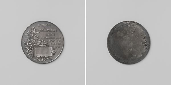 Editor: Here we have a metal engraving from 1851 by Allen & Moore, titled "Bouw van het Crystal Palace voor de Internationale tentoonstelling van industrie te Londen." The small scale and cool metallic tones give it a very austere feel. What cultural weight does an image like this carry? Curator: Well, think of the Crystal Palace itself. It was revolutionary, a testament to industrial power and architectural innovation, yet it evoked classical grandeur. On the engraving we see the crisp architectural lines paired with detailed textual measurements and construction cost, yet rendered as if struck as a commemorative coin. How does this visual language evoke past glory while pointing toward modernity? Editor: I hadn't considered that juxtaposition. The coin format makes it feel like ancient Roman architectural triumphs. Curator: Precisely! It's an interesting cultural commentary about progress and cultural memory. What visual symbols here create such a layered meaning, would you say? Editor: The building is clearly modern in design, yet rendered in the graphic style reminiscent of ancient coins. So, it links the British Empire's industrial might to past empires, like Rome or Greece. Curator: Absolutely! Consider, then, how this engraving compresses so many intertwined ideas. By understanding the symbolic references and juxtapositions, it speaks volumes about a nation’s aspirations at that moment in time. Editor: That's a very helpful reading. I will definitely look at objects differently from now on. Curator: Excellent! Remembering that objects are not isolated gives richness and continuity to historical vision.