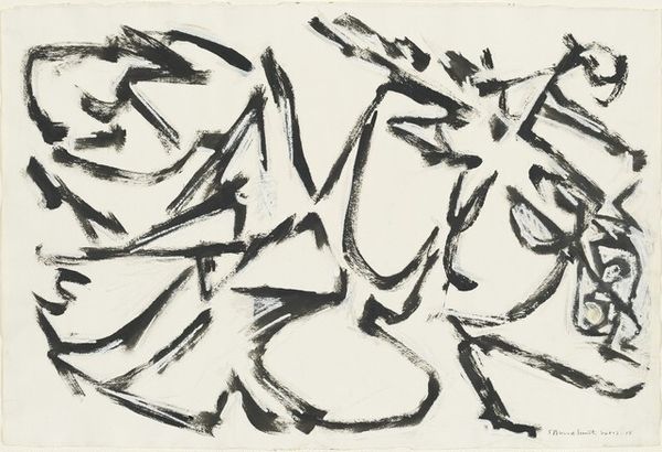 Curator: Welcome. Here we have Ossip Zadkine’s print, "Two Figures". It's rendered with intaglio and ink. What are your immediate thoughts on the piece? Editor: Stark, fragmented. There’s a definite tension between the geometric shapes and the attempt to represent organic human forms. The heavy use of line suggests anxiety or instability, perhaps? Curator: That's an astute observation. Notice how Zadkine employs Cubist principles; he breaks down the figures into geometric components, fracturing their forms across the picture plane. The interplay of line, texture, and the lack of color are all meticulously controlled. Editor: How might this fit into the historical context of early 20th-century art? Did the anxieties reflected through its Cubist visual vocabulary correlate with broader social tensions and shifts, particularly within Europe? Curator: It absolutely did. Many artists were grappling with rapid industrialization, urbanization, and, of course, the looming shadow of war. Cubism was a revolutionary way to challenge traditional representation, and perhaps reflected the shattering of old orders. Note also how the angular forms almost mimic machine parts. Editor: Indeed. I think these jagged contours could symbolize not only an inner psychological tension, but also societal ones related to the dehumanizing effects of industry on people. Curator: I appreciate that you pick up on the feeling of unease; the relationship between form and content cannot be dismissed. But ultimately the abstract structure, the intentional dismemberment and re-assembling is a fascinating demonstration of semiotics in action, and that is a valuable perspective regardless of social context. Editor: True, but an entirely apolitical assessment might overlook ways in which this formalism communicated something resonant about Europe to the wider viewing public. Still, an art's beauty certainly endures regardless of interpretation. Thank you, it’s a lot to reflect on! Curator: And thank you. A thorough examination always includes varied lenses to gain deeper understandings.