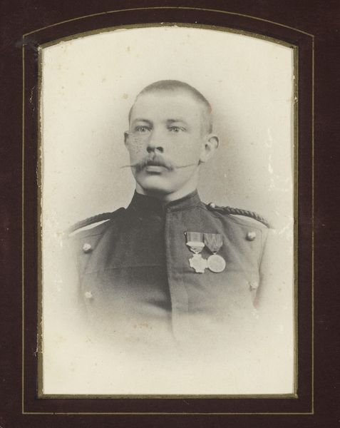 Willem Gerhardus Kuijer made this photograph of an unknown man in uniform sometime in the 19th century. This portrait offers us a glimpse into the social and institutional landscape of the Netherlands during that era. Looking closely, the man's uniform, complete with epaulettes, suggests military or civil authority. Photography, in this context, becomes a tool for projecting power and status. The Netherlands at the time was undergoing significant transformations, marked by industrialization, urbanization, and evolving political structures. The rise of a professional class and the expansion of bureaucratic institutions created a demand for images that affirmed social hierarchies. To truly understand this photograph, one might consult historical archives, military records, and studies of Dutch society in the 19th century. By examining such resources, we can decipher the intricate web of social relations and power dynamics that shaped the creation and reception of this image. Ultimately, this photograph serves as a reminder that art is always embedded in a specific time and place, reflecting the values and beliefs of its creators and audience.