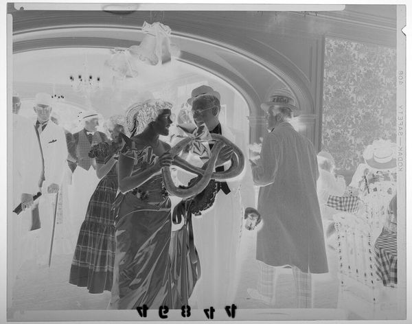 Editor: This photograph by Martin Schweig captures a masonic ceremony where a woman receives a corsage, a scene I find intriguing. What can you tell me about the social context of this image? Curator: Consider the role of fraternal organizations like the Masons in shaping social hierarchies and communal bonds. This image offers a glimpse into their public rituals, and how such events legitimized their influence within the community. What does the presence of an audience suggest to you? Editor: It hints at the performative nature of these ceremonies, and their intended impact on public perception. Thank you. Curator: Indeed. It reminds us that art isn't created in a vacuum, but within a complex web of social and political dynamics.