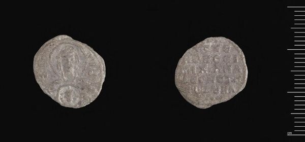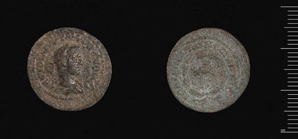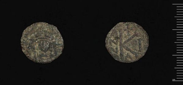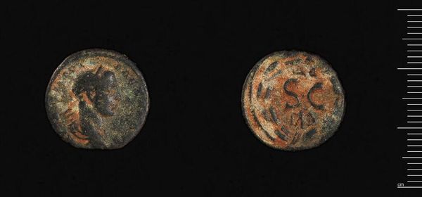 Curator: This is a prutah, a coin minted by Herod Archelaus in Jerusalem. Editor: It’s a humble object, yet powerful. The worn bronze surface speaks volumes. Curator: Indeed. Archelaus's reign was brief and turbulent. These coins reflect that instability—the imagery, the legend, all tools to reinforce his power. Editor: The details, although faint, show a galley and a bunch of grapes. The composition itself seems to be struggling for balance, echoing the unease of his rule. Curator: Precisely! It’s a claim to power, but one undermined by the very conditions of its creation. Editor: It makes you consider the weight of history held within a single coin. Curator: Absolutely, from the economy to the social status of its time.