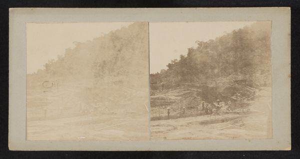 Curator: Let's consider this gelatin-silver print, titled "Gezicht op Watersmeet House te Lynmouth," created sometime between 1850 and 1880. What strikes you initially? Editor: It has a soft, almost dreamlike quality. The light feels filtered, like looking through dense foliage into another time, quite subdued really. There's a distinct layering effect too, like viewing the hills as textiles one on top of the other, each shade adding complexity. Curator: Precisely, and this layering speaks to the Romantic tradition—that idealised view of nature. The photograph’s composition subtly reinforces hierarchies; with the Watersmeet House nestled almost subserviently into the hillside, the landscape has an all-encompassing power. What kind of narratives does that subservience trigger, perhaps related to colonialism and control, nature domesticated. Editor: Or, what sort of industrial processes were at work in gelatin-silver printing that allowed it to become such an expressive tool. You are dealing with some significant labour hours involved to print something on such a large format. Considering what resources were going in—materials like silver, labour to process such photographs and all for what purpose really, perhaps aesthetic but at whose expense? And this particular printing technique – could you consider the social history and processes in play? Curator: That is a fascinating point! And brings another dimension to the conversation; consider too, the concept of "wilderness" being presented in the photographic landscape and the ideologies it advances around class, race, and gender roles, especially in contrast with the social realities and experiences of many in this specific historical period, for instance. It prompts deeper questions, doesn’t it, about who this idealized view of nature actually serves and who it potentially marginalizes? Editor: And where these were intended to be distributed for the end consumer. Thinking about this photograph’s materials and method and the impact they might have had can bring greater awareness of those historical consumption patterns for viewers. Curator: I concur. The interplay here underscores photography’s pivotal role in shaping perceptions and in embedding political and social hierarchies. Editor: Yes, it brings awareness that this print shows both technical proficiency and cultural narrative; making us rethink how to appreciate photographic materials.