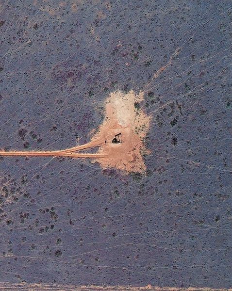 Mishka Henner's 'Levelland, TX' offers a stark view of the Texan landscape, dominated by the repetitive, almost hypnotic, patterns of land divisions and the solitary presence of an oil pump. The pump, a modern-day industrial behemoth, evokes ancient symbols of extraction and sacrifice, reminiscent of the minotaur in his labyrinth, demanding resources from the earth. This lone structure echoes motifs seen throughout history, from ancient ziggurats to the Tower of Babel, all representing humanity's ambition and its reach towards the heavens, often at a great cost. The barrenness surrounding the pump station emphasizes a Promethean theme, where technology, like fire, can bring advancement but also carries potential destruction. The psychological weight of this image lies in its subtle unease. It reflects our collective anxiety about the environment and our insatiable thirst for resources. The oil pump in 'Levelland, TX' is more than just a piece of machinery; it is a recurring symbol in our cultural memory, continually reshaping our understanding of progress and its consequences.